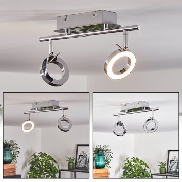 Der Strahler Fez Black 2674ZW von Mexlite (Länge: 7,8 cm, Breite: 16,1 cm, Höhe: 8,3 cm) in schwarzem Metall verfügt über zwei LED-Leuchtmittel mit jeweils 8 W (2 x 700 lm) und einer Farbtemperatur von 2700 K. Er ist dimmbar über einen externen Dimmer, hat die Schutzart IP20 und eignet sich für den Innenbereich, besonders im Wohnzimmer.