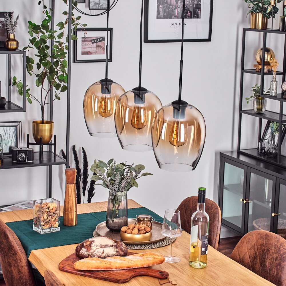 Vevino Pendelleuchte Glas 20 cm Bernsteinfarben, Klar, 3-flammig